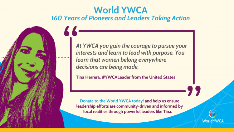 In her role as vice chair of YWCA USA Board of Directors, she is working closely to make change happen within the current political climate. Leaders like Tina remind us of how once a young woman joins YWCA, she might have many life transitions, but the YWCA never leaves her. For 160 years the YWCA has been a touchstone for leaders to do challenging work on the ground, in communities- impacting the lives of so many.  We need your support to continue with this work.